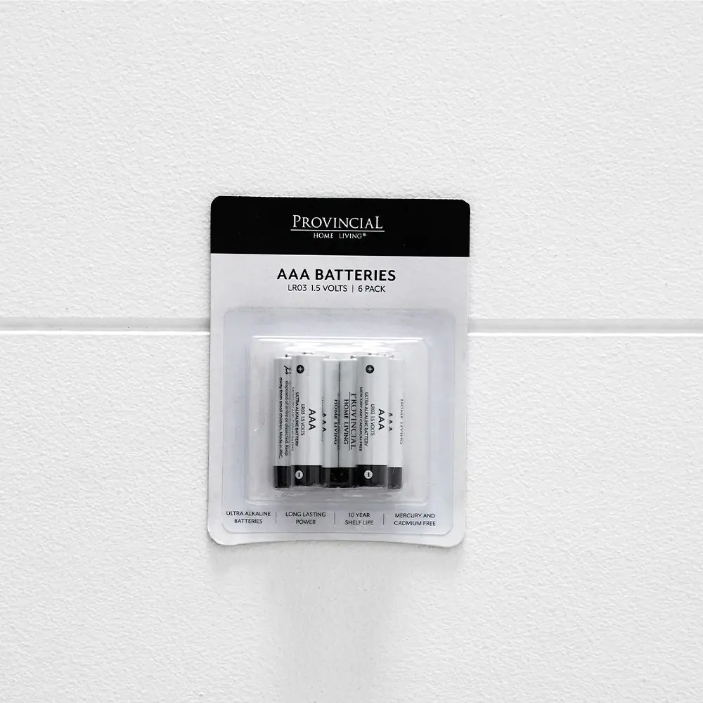Ensure your essential devices never run out of juice with our 6-pack of AAA batteries. Featuring a distinctive black and white design, these batteries combine a modern aesthetic with reliable energy delivery. Perfect for powering everything from study tools to festive holiday decorations, this pack is a household necessity.