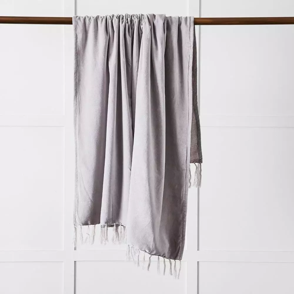 Add a touch of luxury to your bed or sofa with this chic velvet throw. Made with100% cotton velvet on one side with a 100% linen gauze on the other and a decorative fringing.