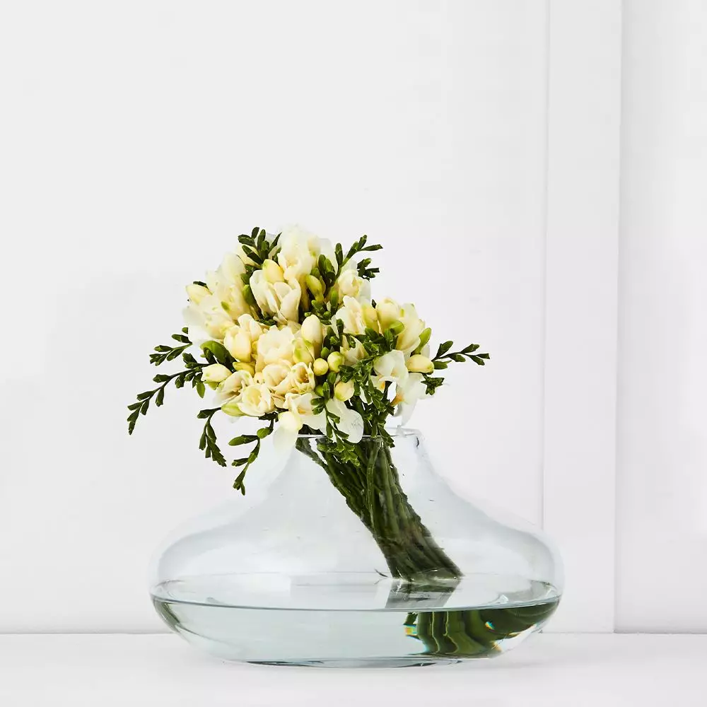Amal is a charming handblow clear glass vase in the popular gourd shape that is perfect for arranging blooms or foliage.