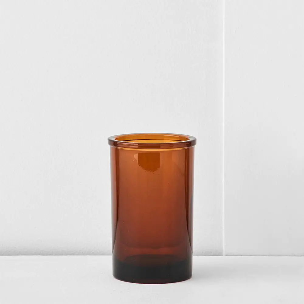 Featuring a deep, translucent amber hue, this cup captures and diffuses light beautifully, adding warmth to your countertop. Its versatile design makes it perfect for use as a toothbrush holder, a makeup brush organizer, or a sophisticated rinsing tumbler. The smooth, curved profile offers a comfortable grip while maintaining a high-end, curated look.