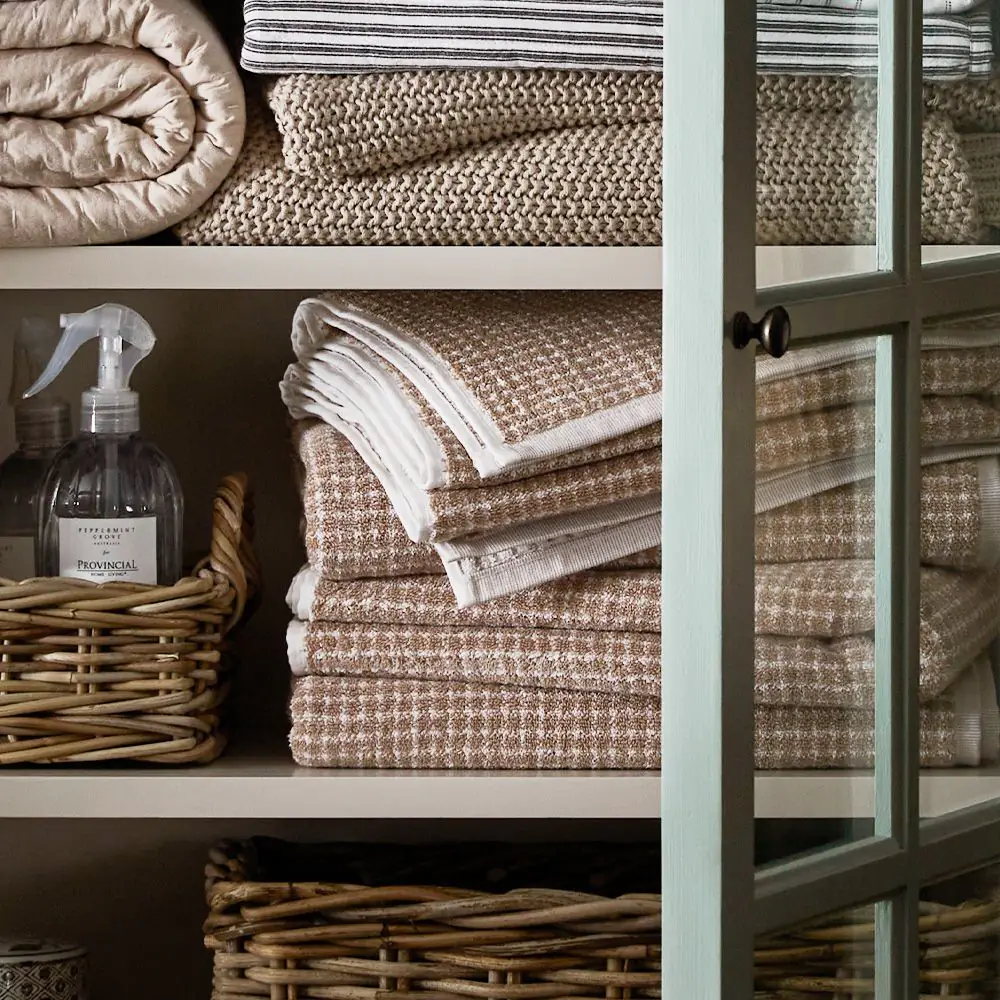 Our Astrid towel range is made from 100% Portuguese cotton, famous for its long staple fibres, softness, and durability. It is woven in a beautiful check pattern with a thick and thirsty weight of 600 gsm. A selection of gorgeous hues is available so there’s sure to be a perfect colour for your bathroom. Treat yourself and turn your bathroom into a 5-star spa retreat.