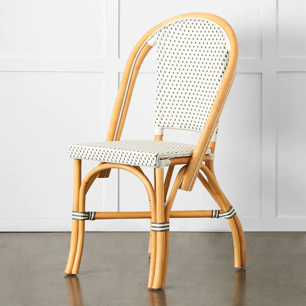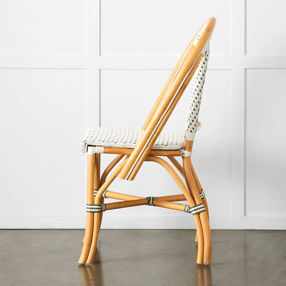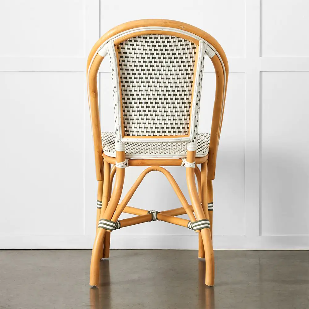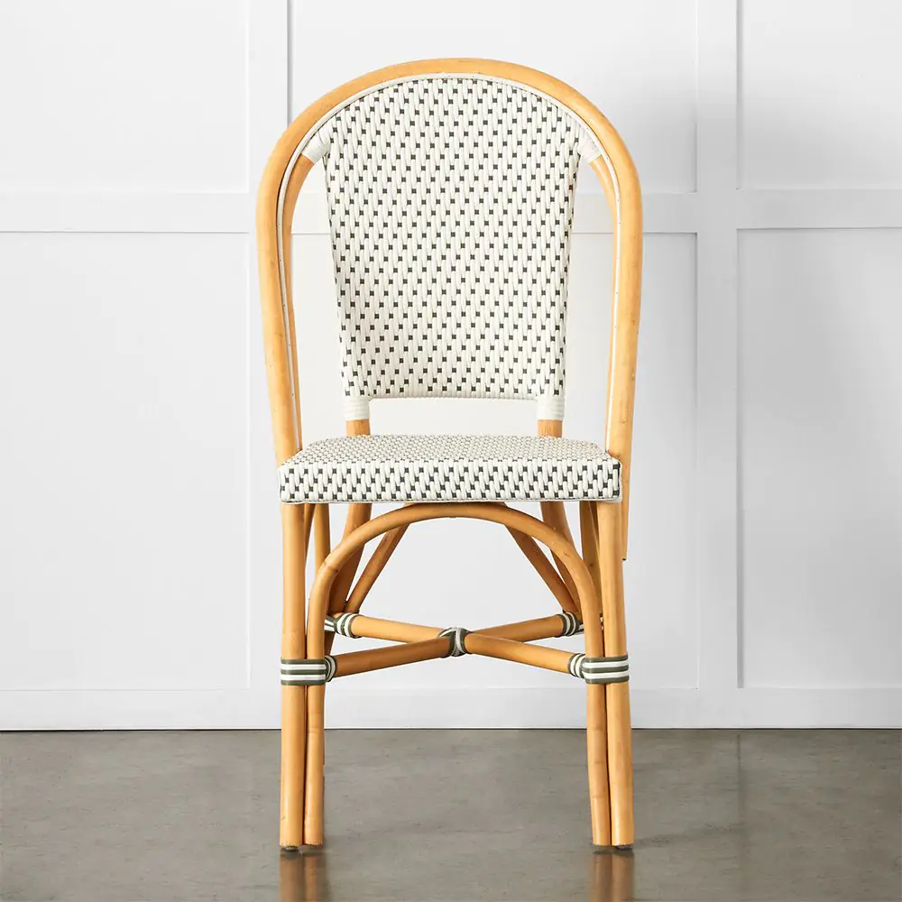 Turn your casual dining area into a French bistro with these smart chairs. Carefully woven from a hard-wearing synthetic on a strong cane frame. The lovely combination of natural cane with white and green is fresh and stylish.