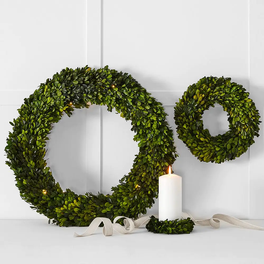 Our stunning boxwood wreath is a decorative piece for Christmas, but it’s so beautiful you may want to leave it up all year. It’s a perfect wreath for the front door, wall or a decorative piece on a console or table. This smaller size can be hung as multiples or with a larger one to create your own display. Crafted from real preserved Boxwood. Spread the Christmas cheer and buy an extra one as a gift!