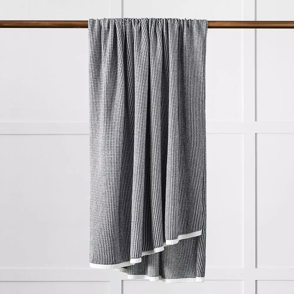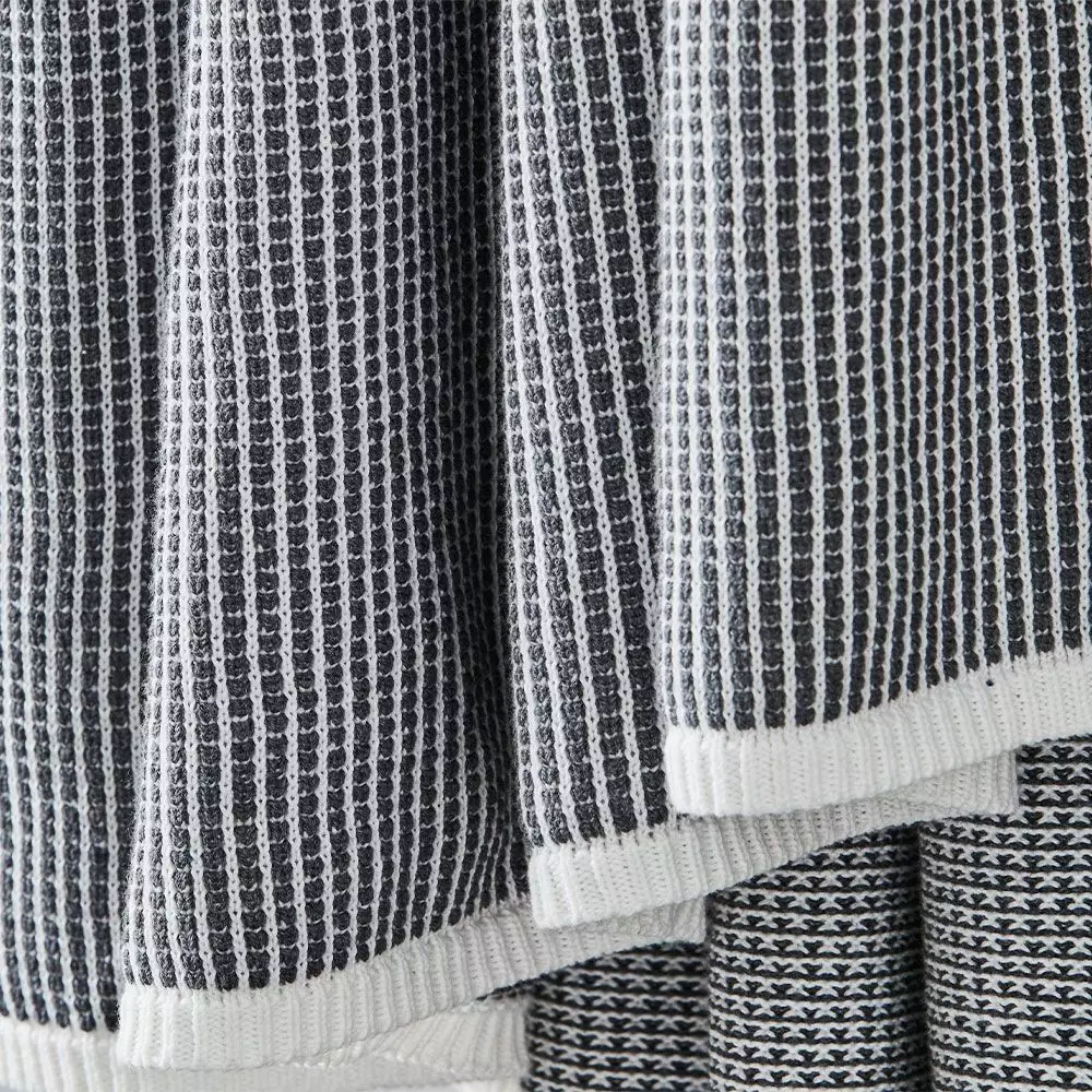 This soft cotton throw with a lovely drape is knitted in a charcoal and white pattern. Perfect for layering on the sofa or on the end of the bed.