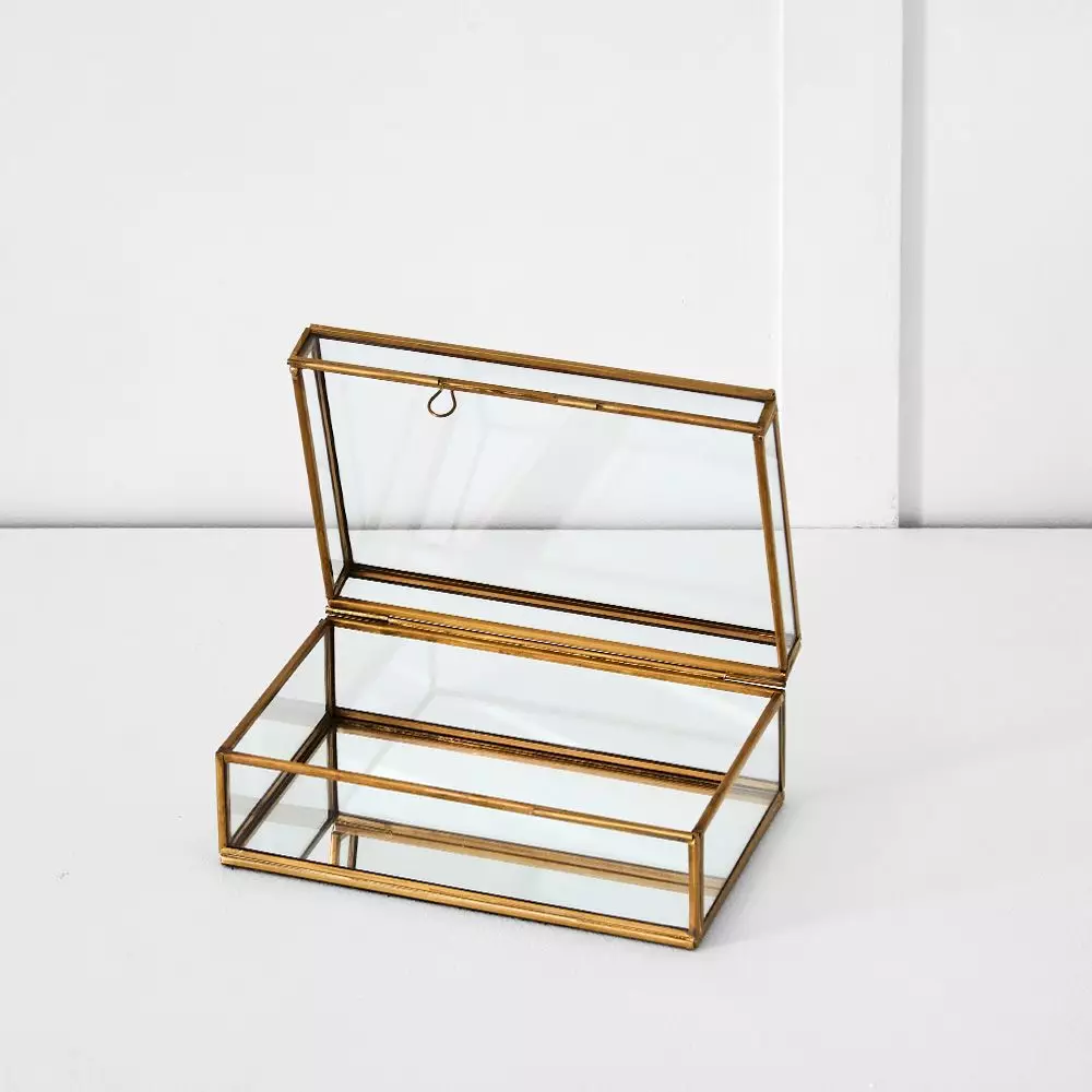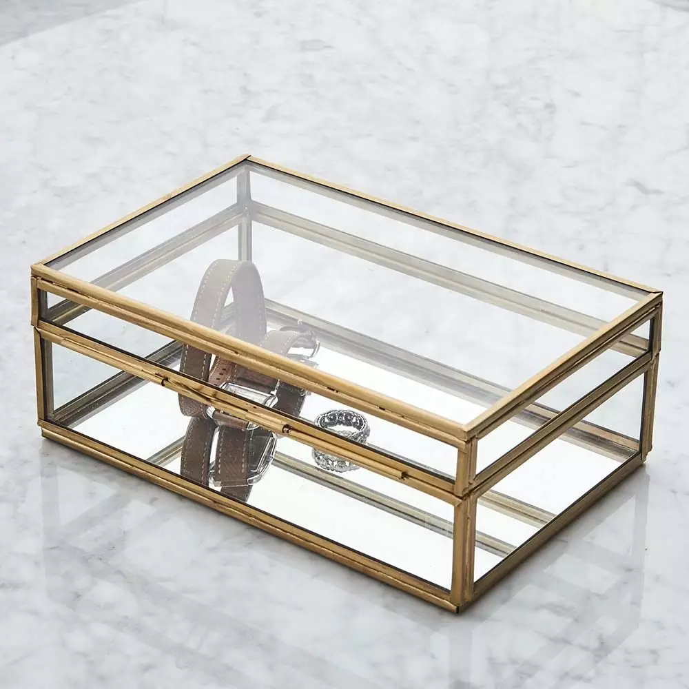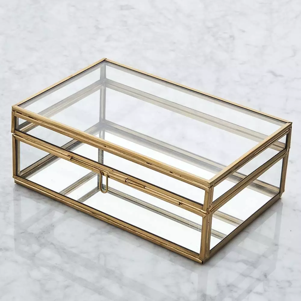 Our Cannes range combines glass with framed brass. Available in a range of items, create a decorative story by combining a few pieces together.