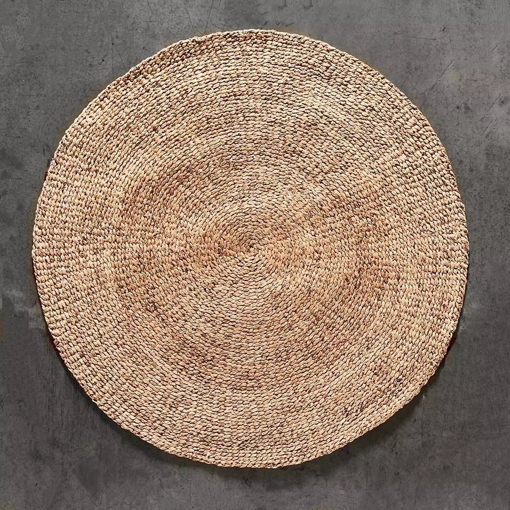 This circular rug is beautifully woven from water hyacinth giving a lovely textrure. The natural colour that will enhance any room.