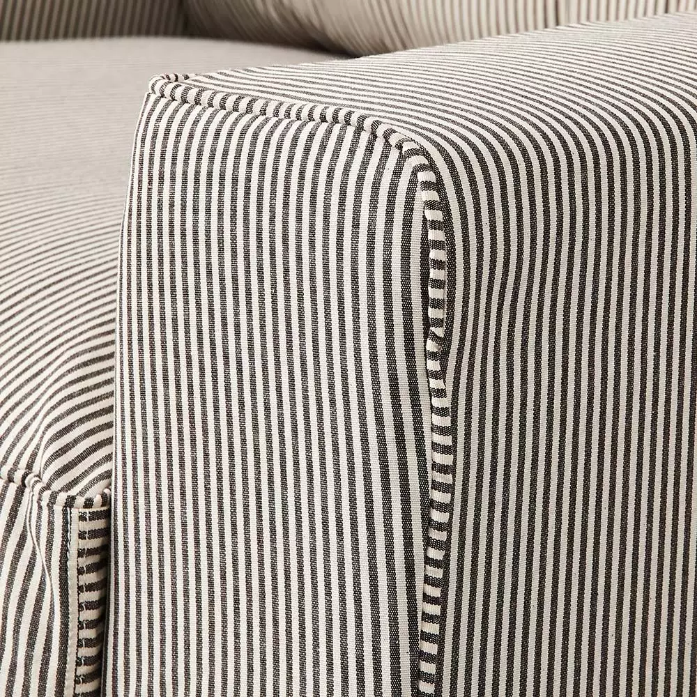 The Dromana armchair, upholstered in a fine black and white stripe cotton – it casual and carefree. The stripe is muted enabling it to be teamed with any other colour. It’s a really comfortable chair with one seat cushion and one back cushion filled with a luxurious feather and foam mix.