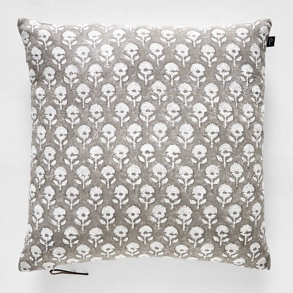 The Elmy cushion is crafted from stunning block-printed linen fabric on one side and plain natural linen on the other, so you can easily change the look of your room simply by flipping the cushion over. The colour combination will pair beautifully with many of our other hand-block printed cushions. It is completed with a luxurious feather insert.