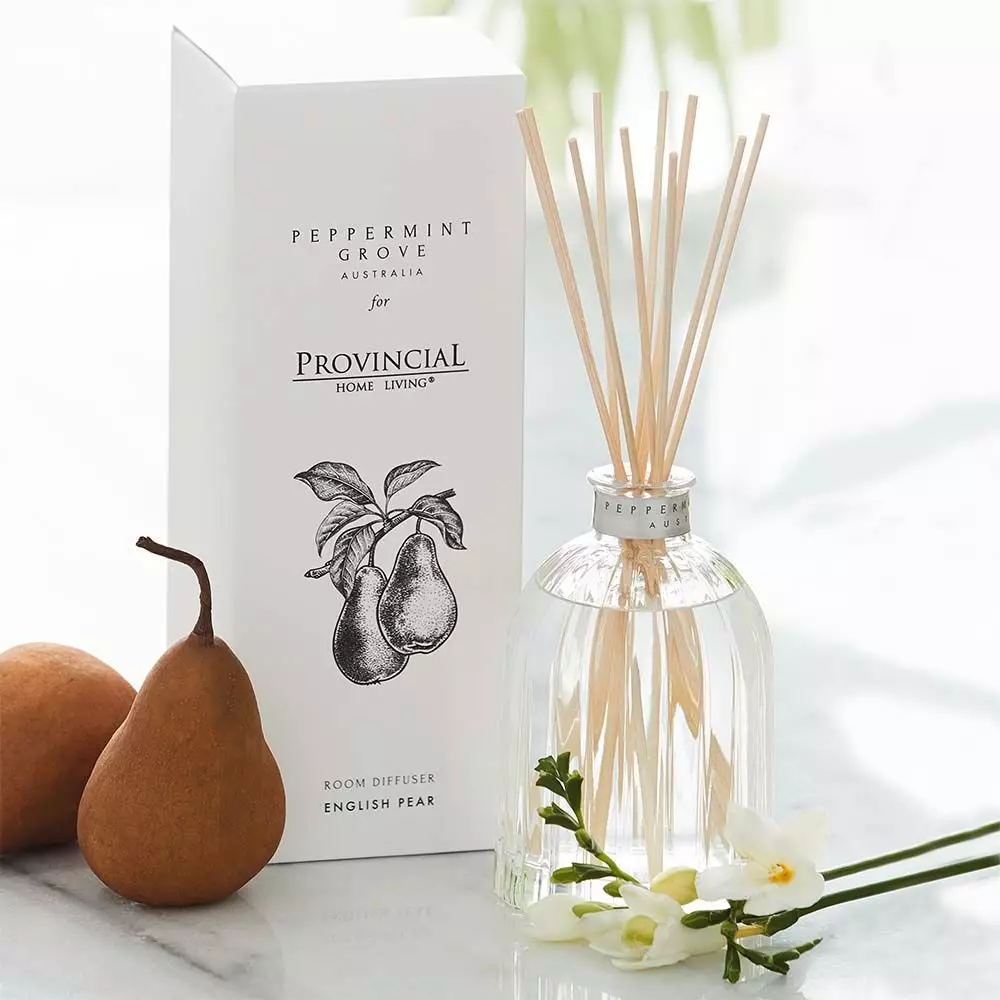 In collaboration with Peppermint Grove Australia we are delighted to showcase our limited release diffuser in our best selling English Pear scent. Tradition in a bottle. A classic mixture of delicately scented fruit combined with the compelling scent of white freesias. A gently scented room diffuser for all romantics. Available in 100ml & 350ml