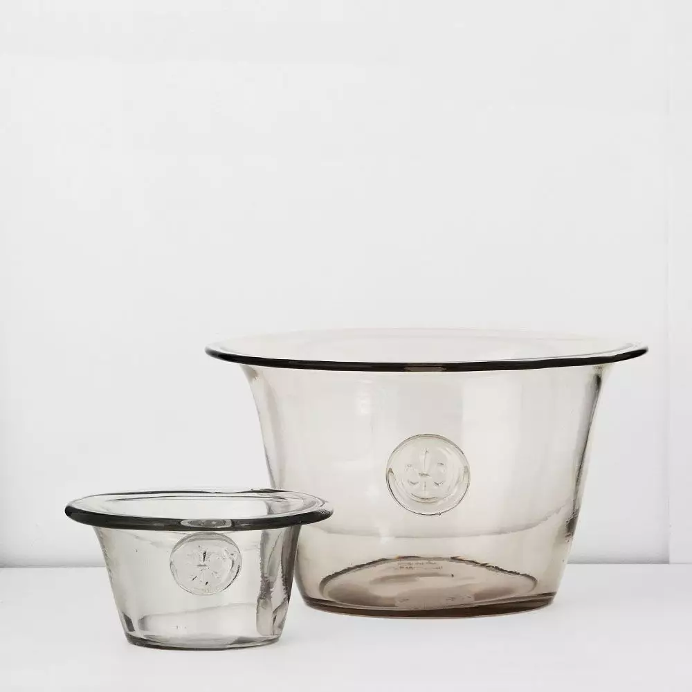 A pretty glass bowl with a fleur de lys motif on the side – perfect fruit or simply use it as a decoration.