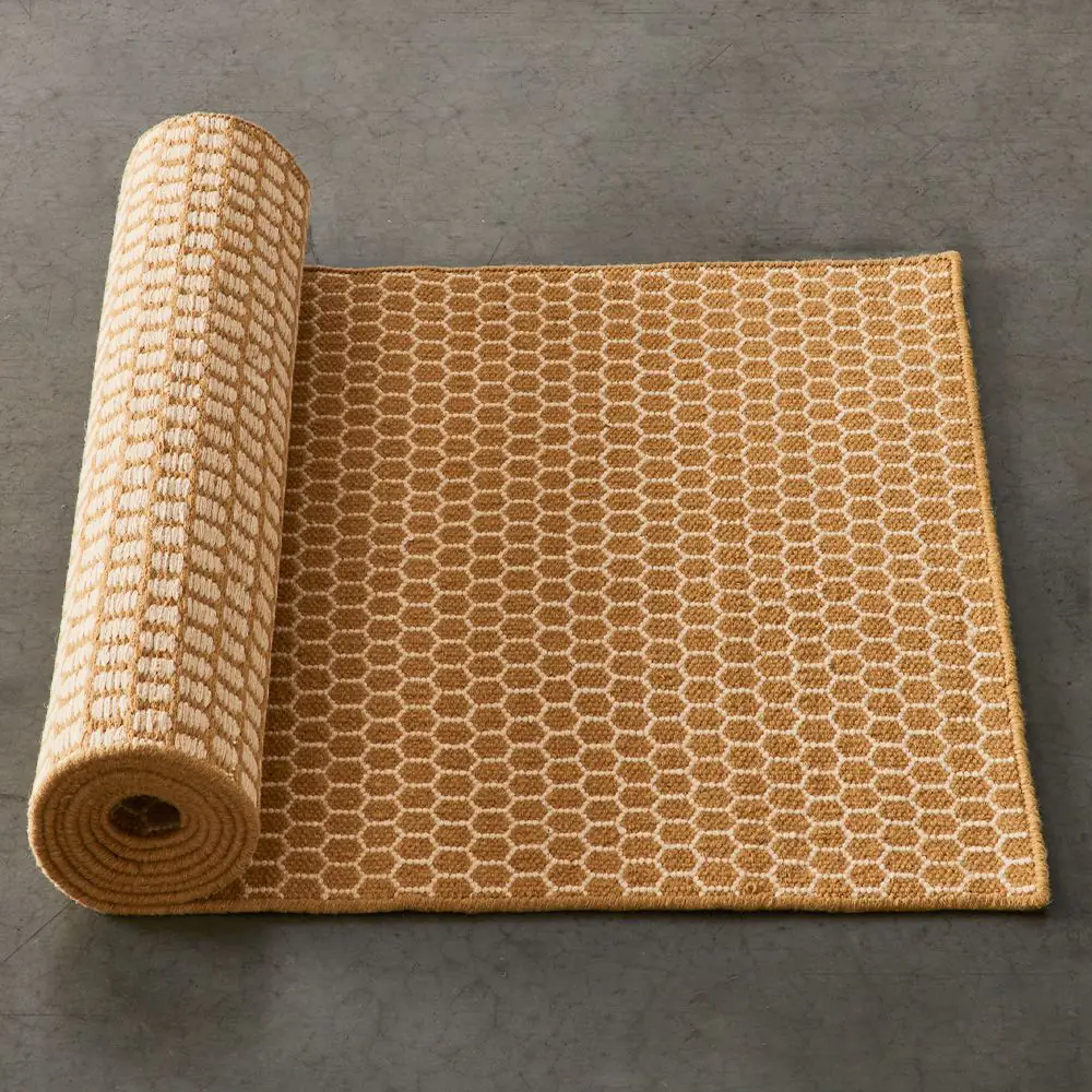 Hokey is a striking caramel and ivory rug to anchor your room and add some colour to your life. Beautifully handwoven from 100% wool in a smart honeycomb pattern.