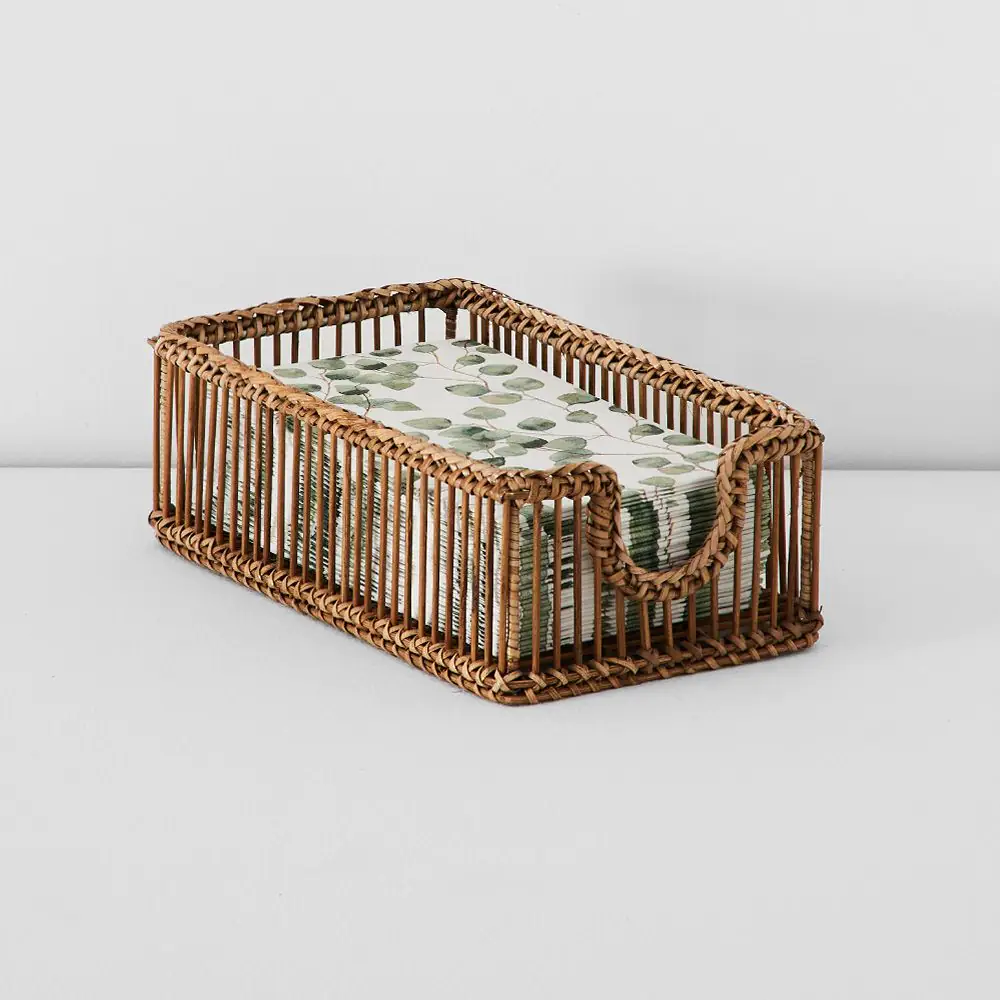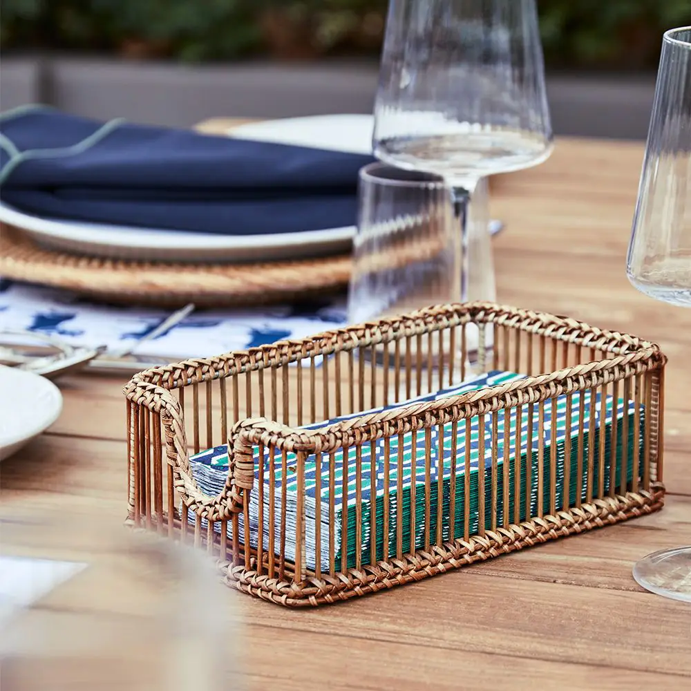 Our Indra range is skilfully handwoven, celebrating the natural textures and honey-coloured hues of rattan. This rectangular serviette holder is thoughtfully designed to hold our colourful dinner serviettes, keeping them neatly in place while adding a layer of handcrafted charm to your table. Both practical and beautiful, it’s a subtle yet stylish detail for everyday dining or entertaining.
