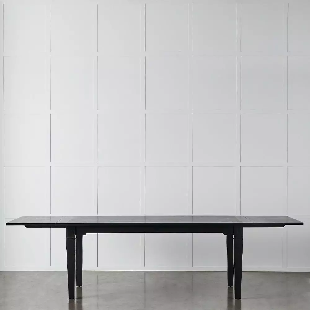 This magnificent extension table is the perfect solution for everyday use (200cm) and transforming for large gatherings (300cm) in just a few seconds. The extension leaves slip easily into slots and have 2 screw fittings that secure it in place at each end.