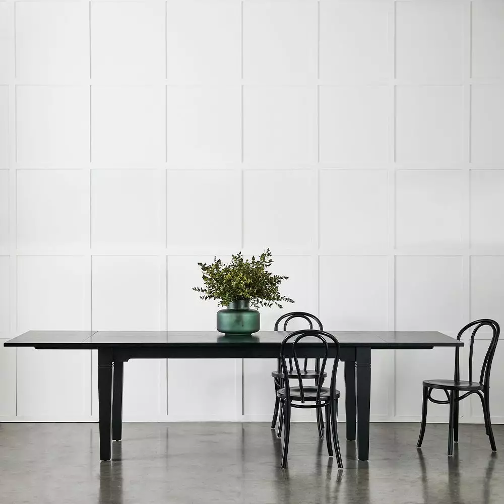 Beautifully crafted from top-quality oak and superbly finished with black paint, this is a table that will be in the family for years to come.