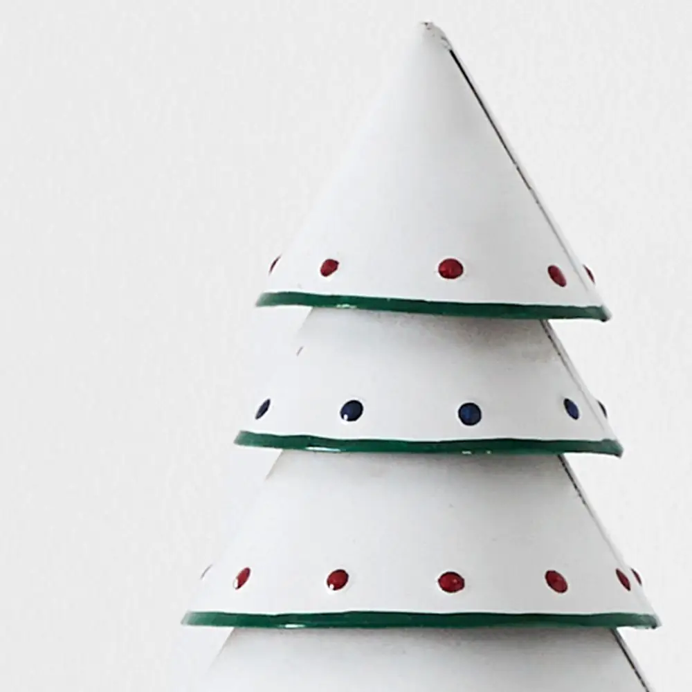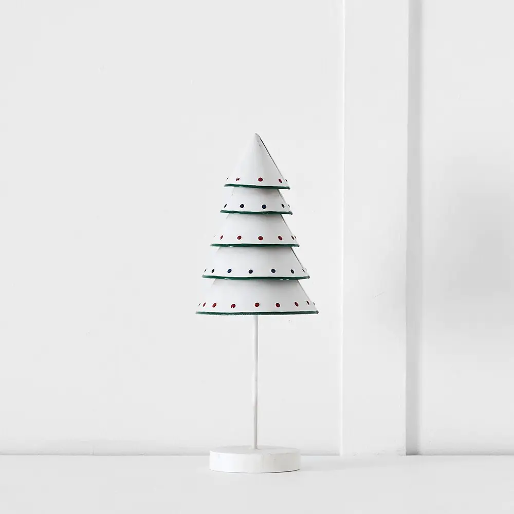 This sweet white Christmas tree is crafted from metal and painted a crisp white with coloured dots around its layers. It’s the perfect tree to mix with some of our other trees to create your very own Christmas forest.