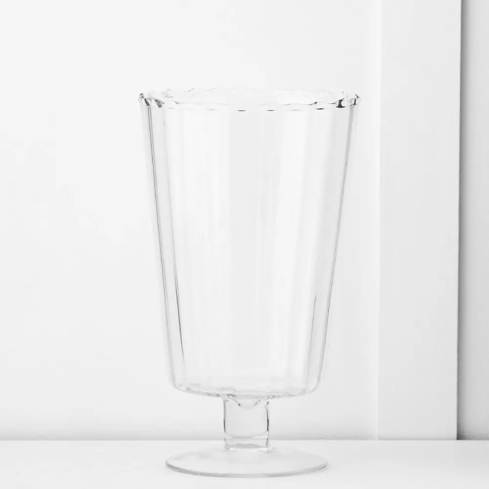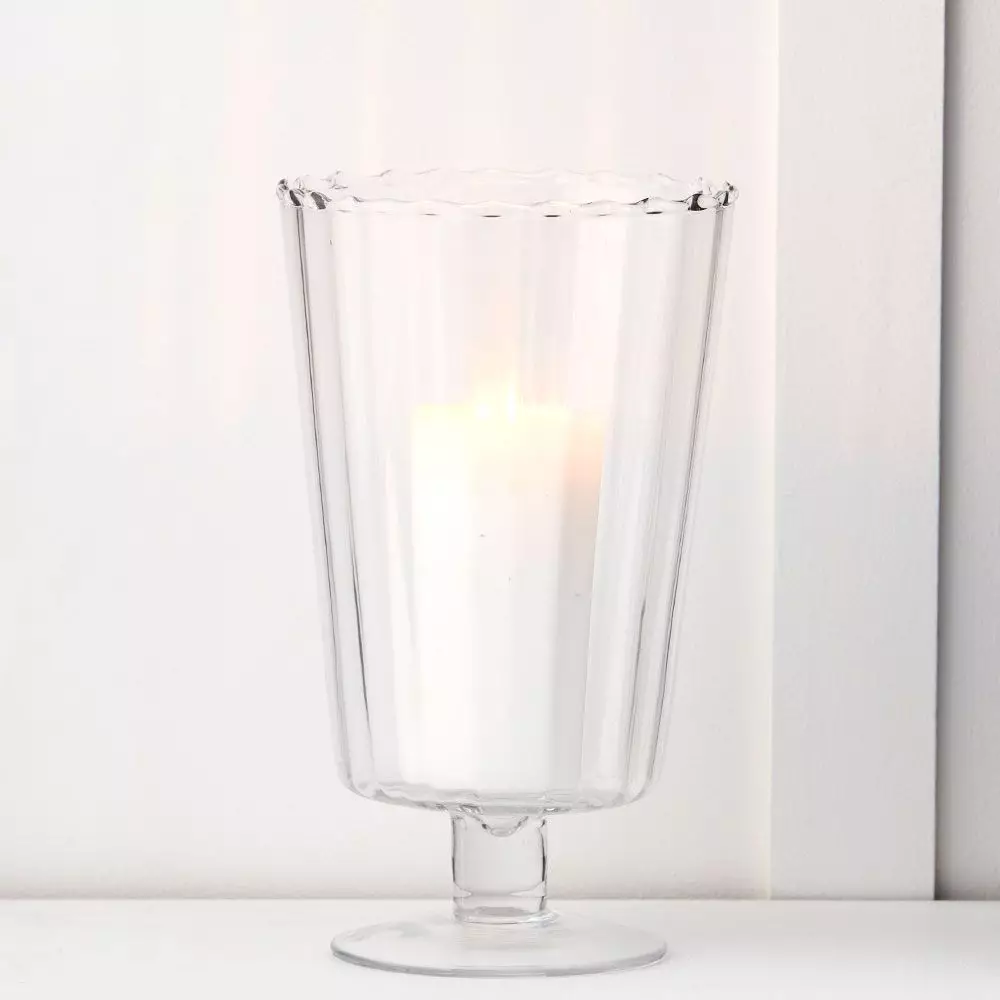 Add a touch of timeless elegance to your home or garden with the Julian Hurricane lamp. This tall, cylindrical vessel features delicate vertical fluting that catches and refracts candlelight, creating a warm, shimmering atmosphere for any setting.
