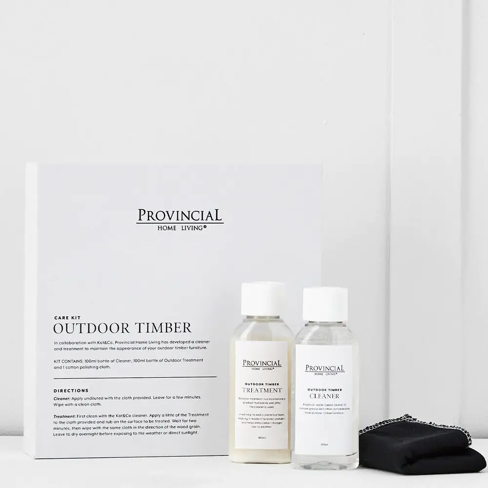 Preserve the integrity and natural beauty of your timber investments with the KatCo x Provincial Home Living Outdoor Furniture Care Kit. This professional-grade collaboration delivers an effortless solution to protect your pieces against the harsh effects of the elements, ensuring your outdoor sanctuary remains pristine season after season.