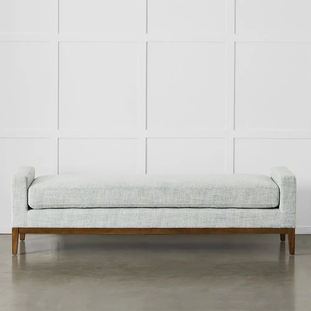 Lars is a versatile, upholstered bench with a dark, birch timber frame contrasting beautifully with soft blue heather upholstery fabric. The sleek lines of the bench make it suitable for many locations and uses. It would look beautiful at the end of a bed, extra seating in the living room or in front of a sofa instead of a coffee table. It will make a welcome appearance in any room where extra seating is required.