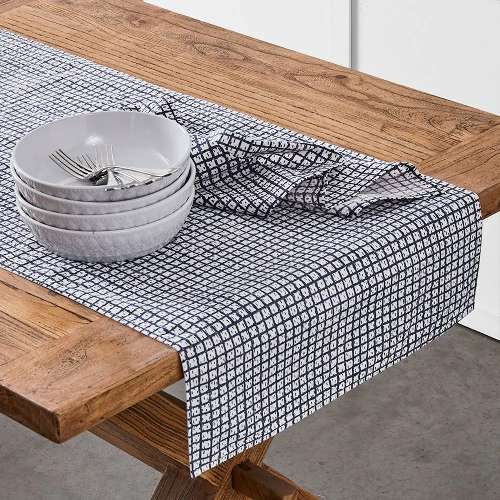 Our Lena range showcases a smart geometric design block-printed on a thick Indian cotton.