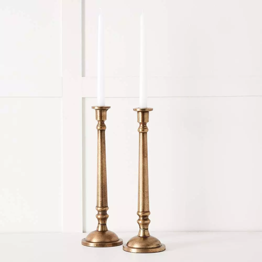 These elegant candlesticks will add a touch of drama to any meal. Made from aluminium.