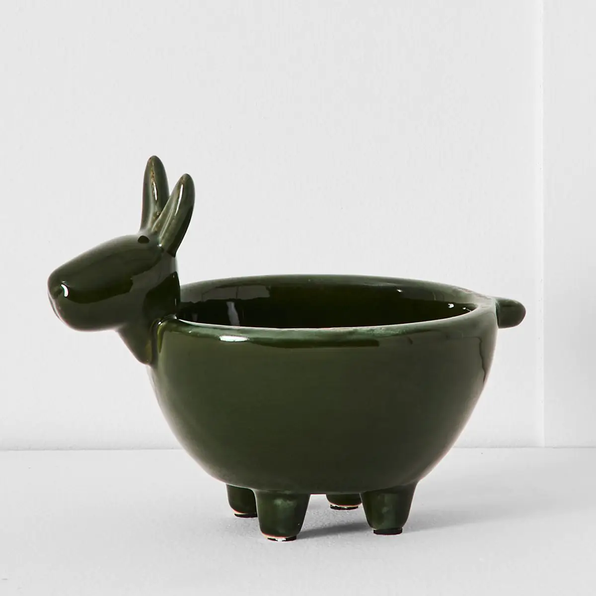This charming handmade terracotta bowl, finished with a beautiful glaze, is crafted in the delightful shape of a donkey. Versatile and decorative, it can be used as a standalone accent piece, a nut bowl for entertaining, or a catchall for keys on your hall console.