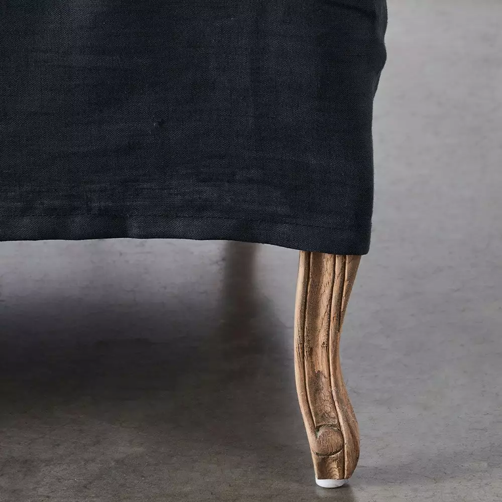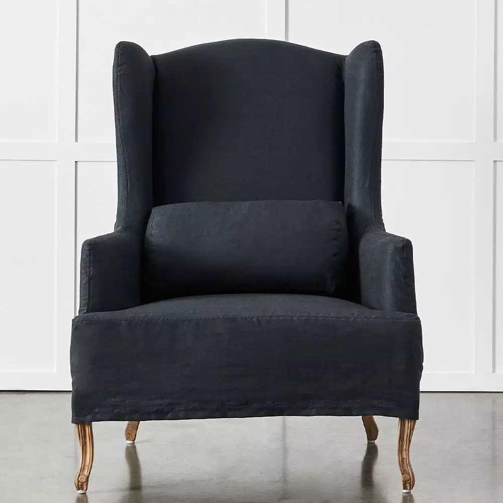 The Ludwig is an elegant mid-sized wingback chair with our signature French style frame and legs but with a twist. It has a removable slipcover in a lovely linen fabric which covers the frame but leaves the intricately carved American oak legs visible. The matching lumbar cushion adds to the comfort of the chair as does the top-quality foam used for the padding.