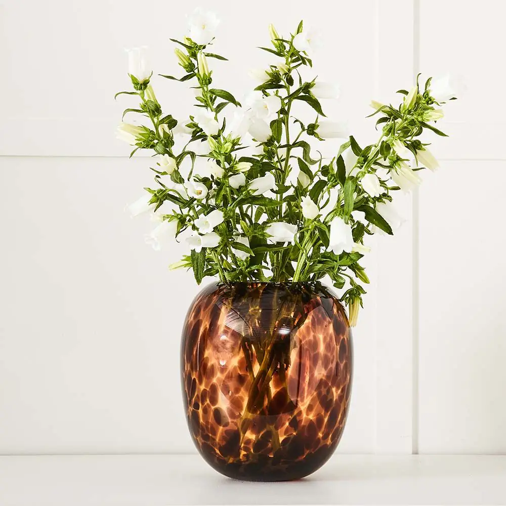 A dramatic glass vase which looks good empty and paired with the other size available or filled with your favourite flowers or foliage.
