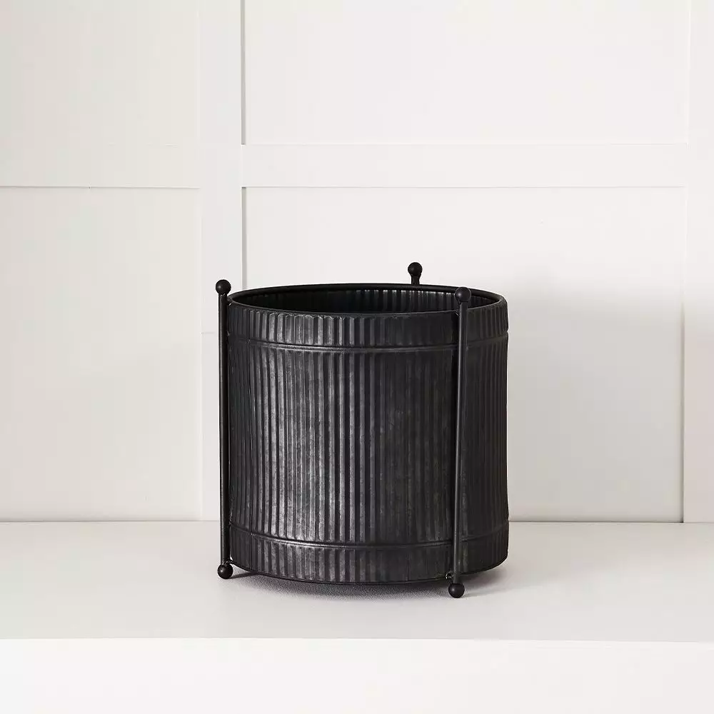 This striking planter is crafted from high-quality tin, featuring a sleek black colorway that provides a stunning high-contrast backdrop for lush green foliage and vibrant floral displays. Its tall, circular silhouette is perfectly sized for topiary, box hedges, or small shrubs, offering a clean and polished aesthetic to any outdoor or indoor setting.