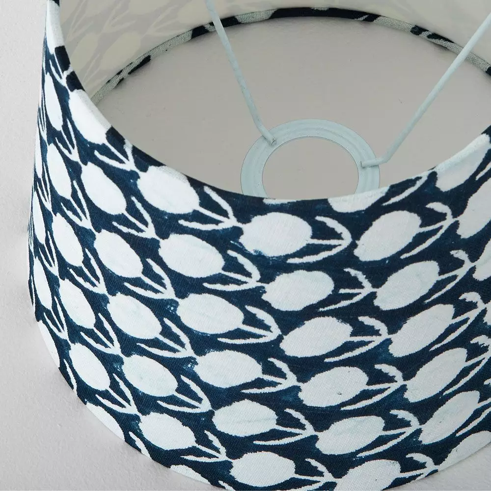 The perfect way to breathe new life into a lamp base with a decorative and colourful lamp shade. The linen fabric is block printed by hand. Matching cushions are available to co-ordinate your room.