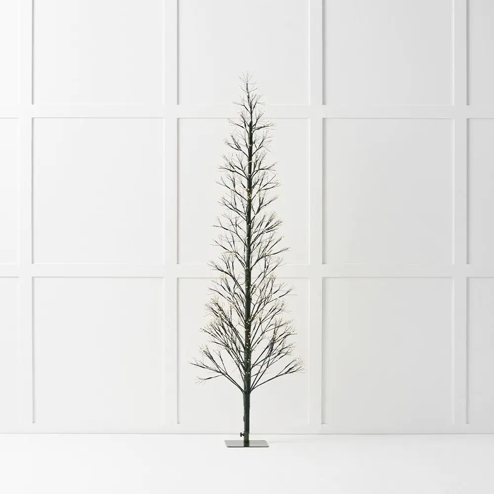 Designed with a sophisticated dark green trunk and finely detailed branches, the Noelle tree mimics a lush winter silhouette. It comes pre-strung with an impressive 1600 micro LED lights that are intricately woven along every limb, creating a dense and enchanting twinkle effect that brings festive charm to your hallway, living room, or entryway.