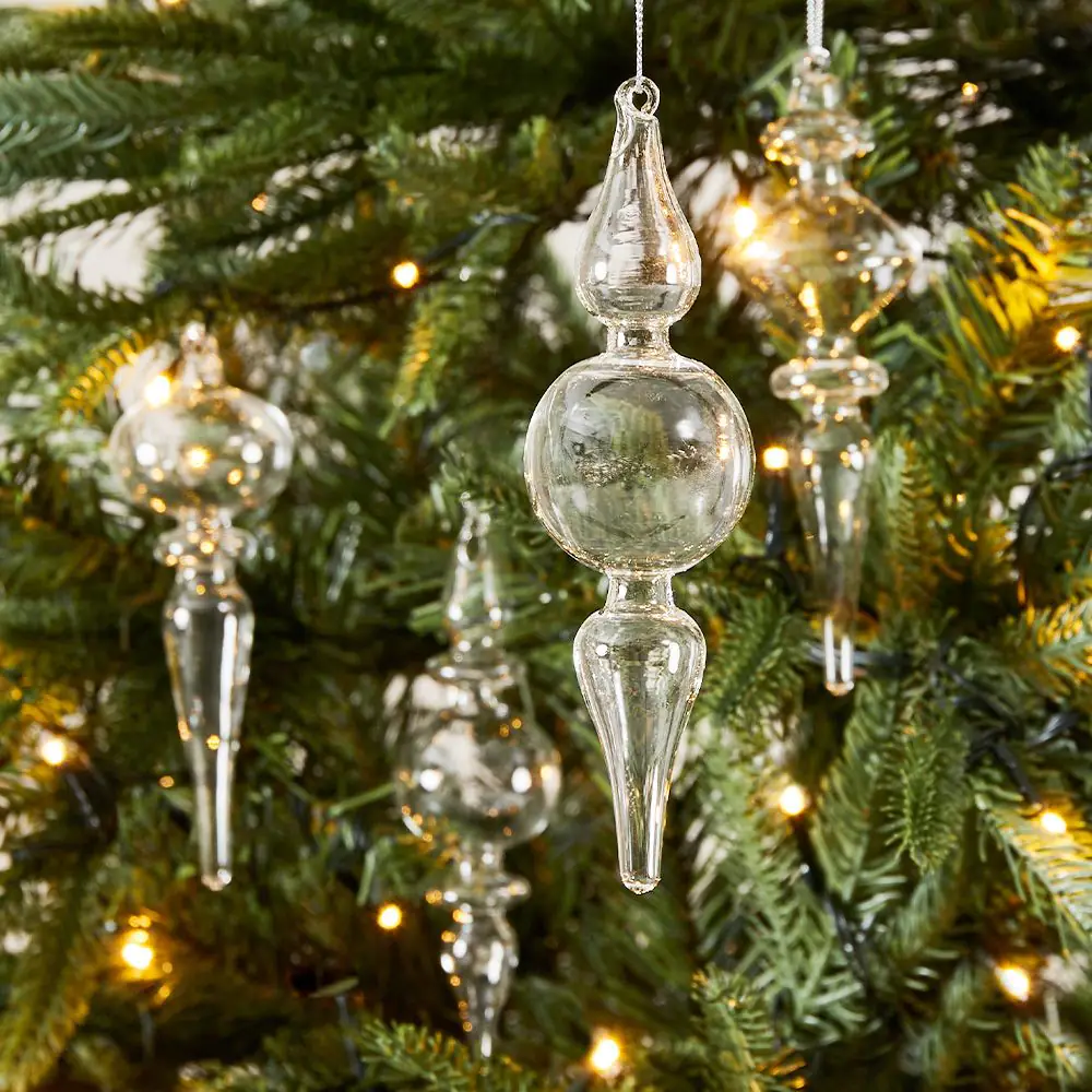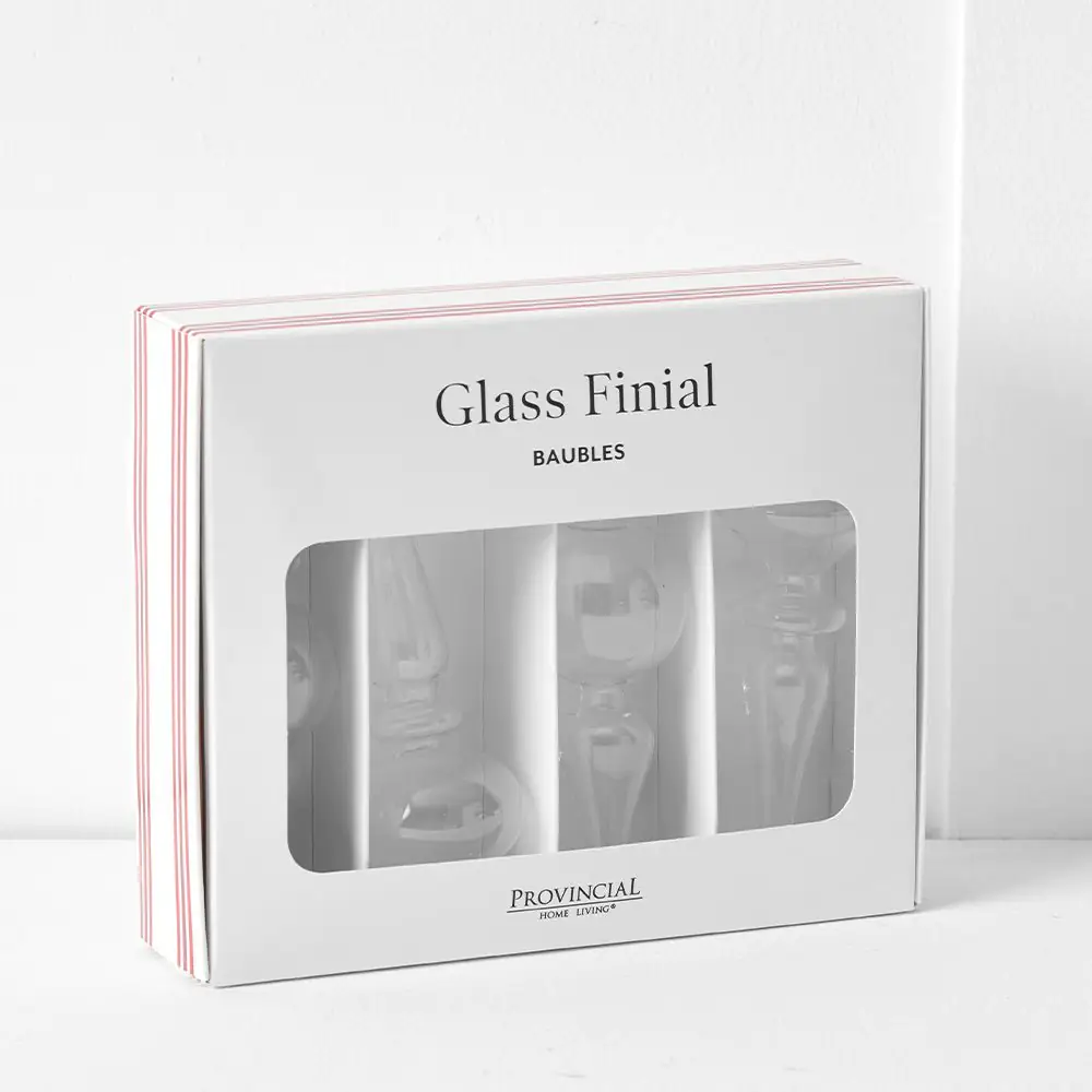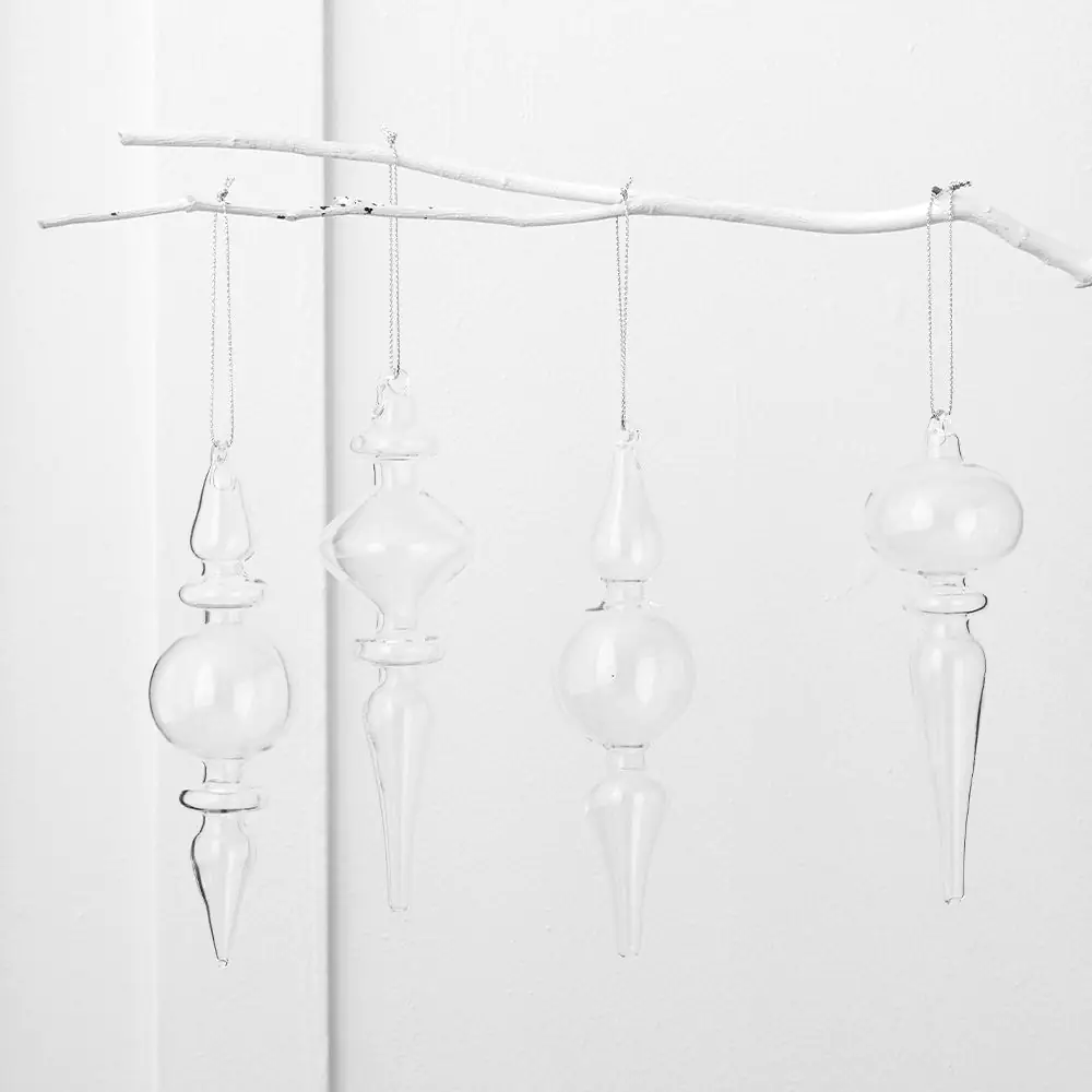 Every December, Christmas baubles in all shapes, sizes and colours find their place on twinkling trees. Hung with care, they catch the glow of the lights and reflect the warmth of home, bringing back memories of joyful gatherings and quiet hopes for the year to come. Timeless and full of charm, baubles are the little treasures that make the season shine. In a handy pack of 4 clear glass baubles, ready to be hung on your tree.