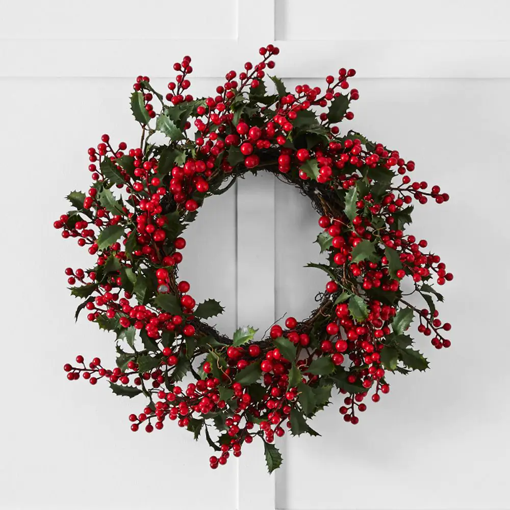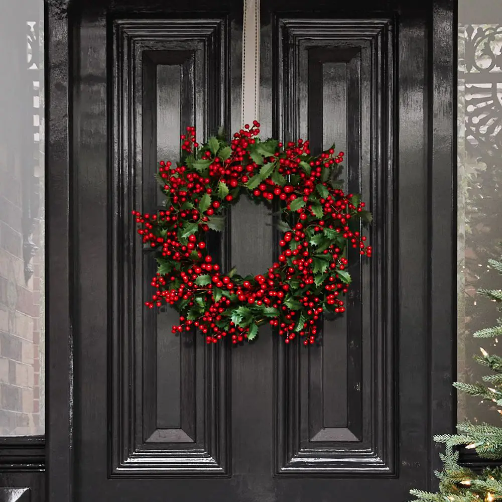 Nothing captures the spirit of Christmas quite like a festive wreath on your front door. This stunning red berry wreath, adorned with green foliage, brings holiday cheer to any space. Whether displayed on your front door to welcome guests or hung inside to add a touch of seasonal charm, this wreath is a perfect addition.