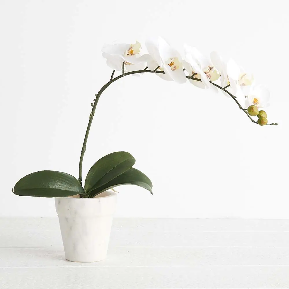 Orchid or rubber plant leaves make a great addition to your phalaneopsis to pad out the base and add interest no matter what size. Alternatively use as a name place setting for your next dinner party by attaching name cards of your guests.