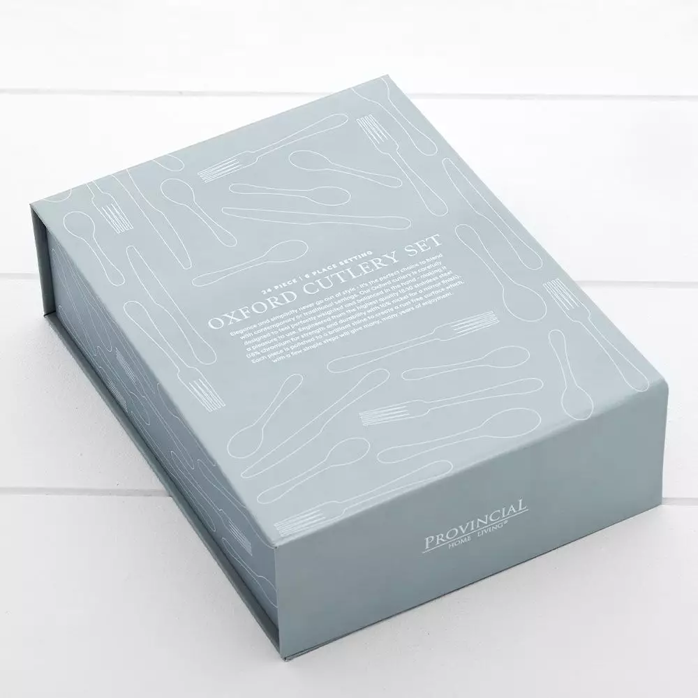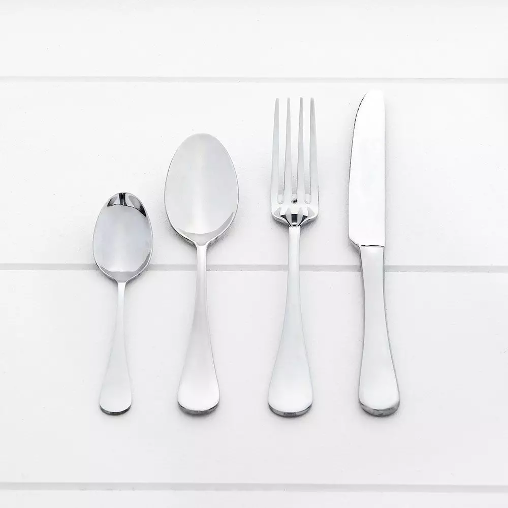A contemporary 18/10 stainless steel cutlery set, the Oxford comprises teaspoon, spoon, fork & knife in a complete setting for 6 people.