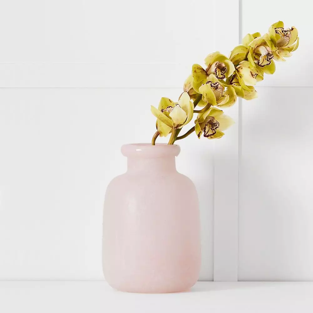 Our frosted glass vases are so beautiful they can even stand alone as an ornament. Group a few together as a still life. Gently hand wash with mild detergent and wipe with cloth.