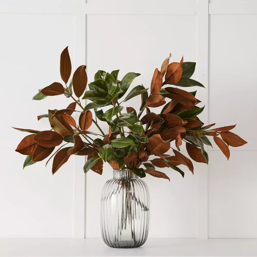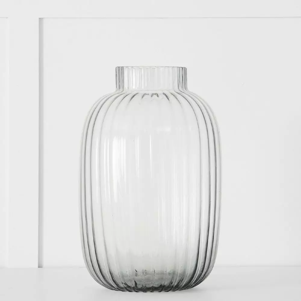 This tall ribbed vase is perfect for all sorts of flowers and foliage. The soft grey colour of the glass will enhance your floral display.