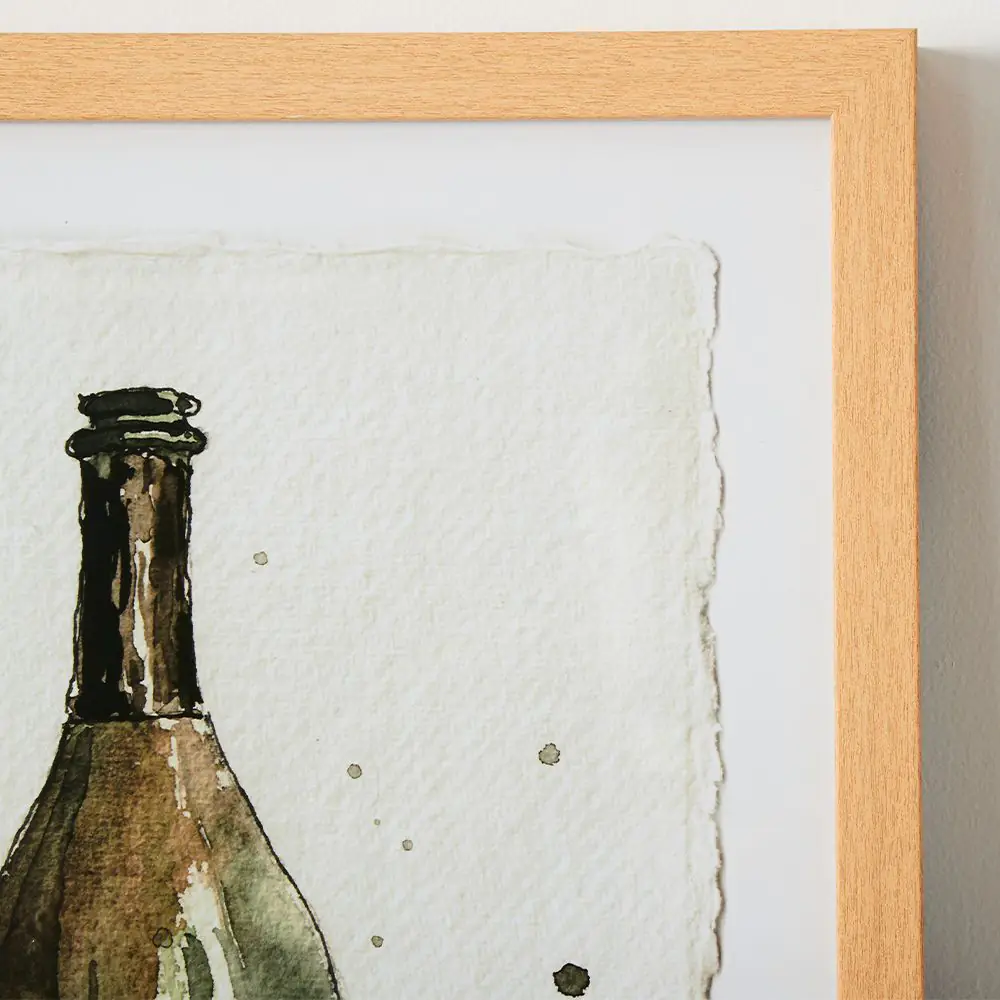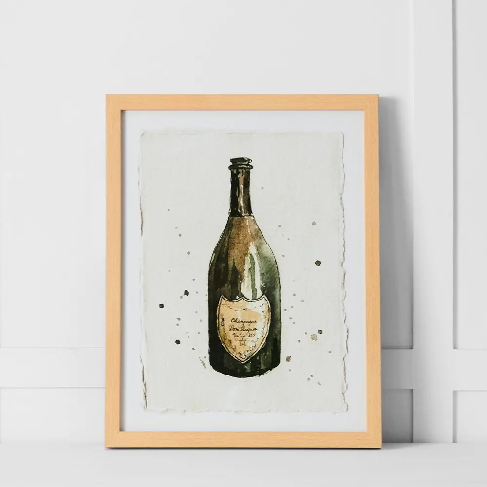 This exquisite watercolour of Dom Perignon champagne bottle is expertly painted for us by Melbourne artist, Helen Lovett. It is carefully reproduced and framed beautifully ready for you to hang in your home.