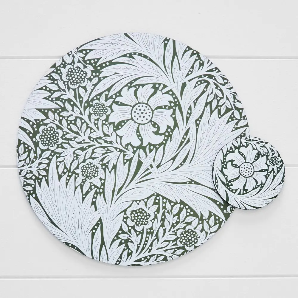 Our Porter cork placemats and coasters are both beautiful and easy to clean up, making them perfect for everyday dining. The Garden range is fresh and inviting with white flowers and leaves on a gorgeous green background.