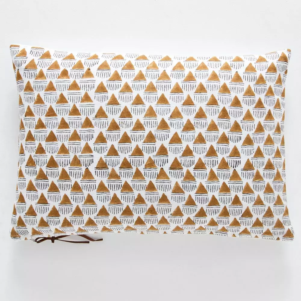 A beautiful block printed cushion on Indian linen in subtle hues. The cushion cover is printed on one side and plain on the other for added versatility. Stunning on its own or mix and match with other patterned or plain cushions.