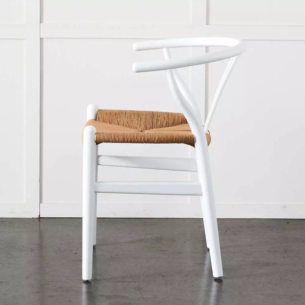 A replica of Hans Wegner’s classic 1950s Wishbone chair which is beautifully crafted from birch and painted white, and in keeping with the history of the original design, the seats are woven from a paper cord. They are as comfortable as they are stylish and are perfect for dining chairs but also work as occasional chairs in the bedroom or sitting room.