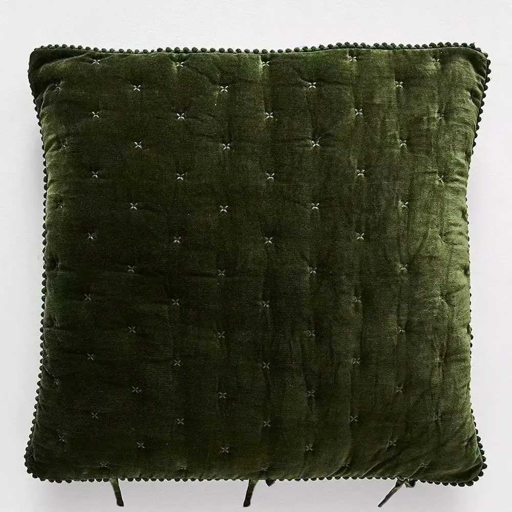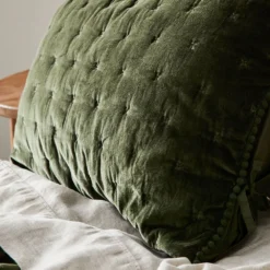 A luxurious velvet sham in a deep green with a decorative edge and cross stitch tucking.