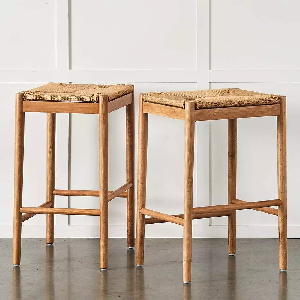 A stylish stool which will look beautiful with our replica wishbone chair. Crafted from oak and in keeping with the history of the original Wishbone design, the seats are woven from paper cord. The footrests make it even more comfortable. Perfect for tucking under the bench when not in use.