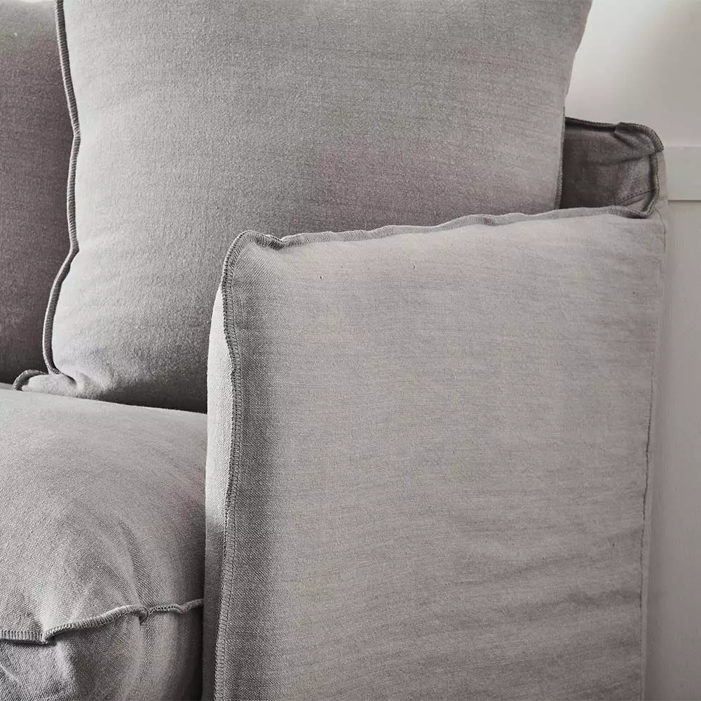The frame is made from Canadian pine, steel springs, the foam cushioning is covered with a mixture of feather and polyester fibre for an extra comfortable seat. The covers are 100% linen with a decorative overlock stitch. All covers and cushions can be removed for professional dry cleaning.