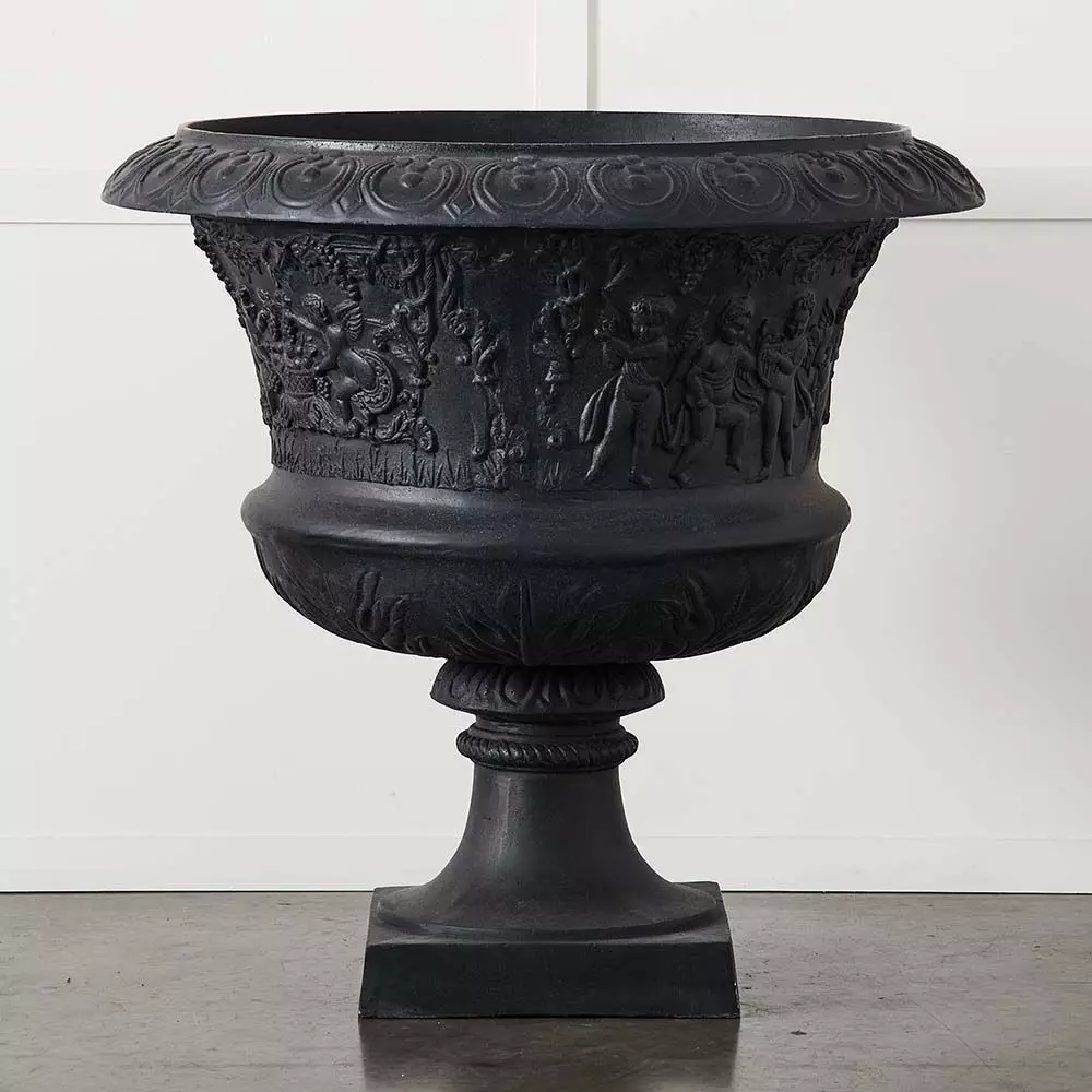 This sophisticated urn is a welcome, decorative addition to any home or garden. Made from fibre glass so the weight is not too heavy for balconies. In a lead colour which looks good with all coloured foliage or flowers.