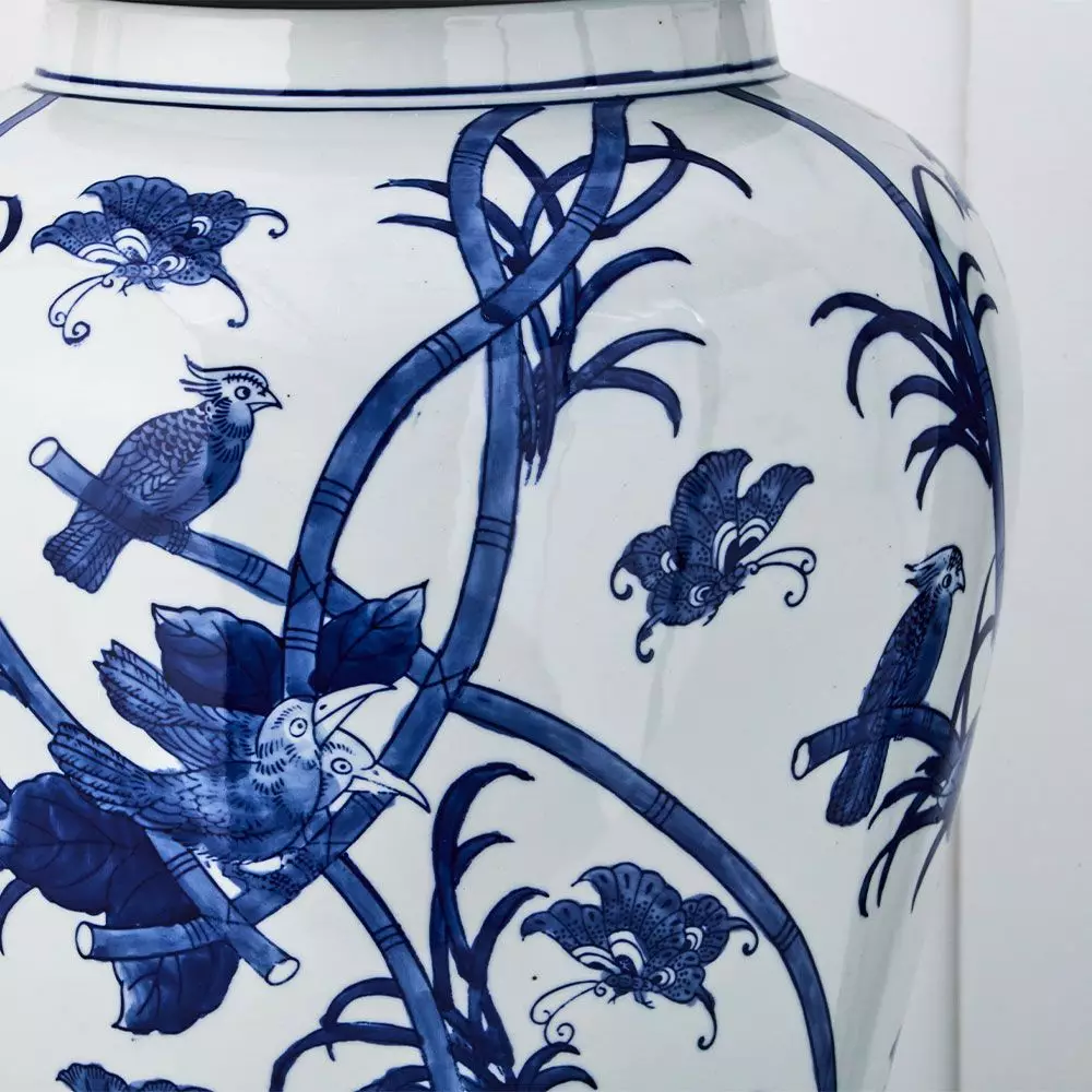 Elevate your home décor with this stunning Ming Ginger Jar, a piece steeped in centuries of Chinese culture and history. Originally designed to store precious spices like ginger, salt, and herbs, this large-scale ceramic jar has evolved into a symbol of sophisticated interior design, perfect for adding an air of tradition to any study or living space.