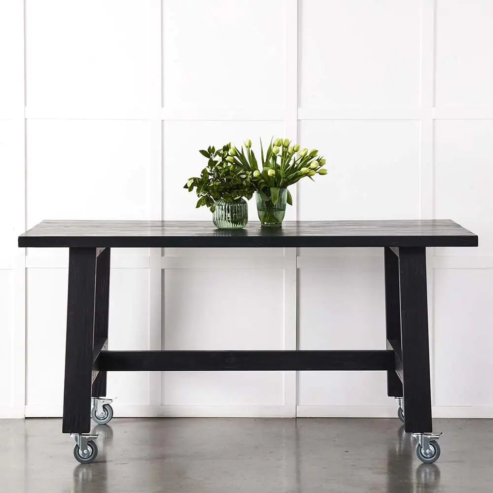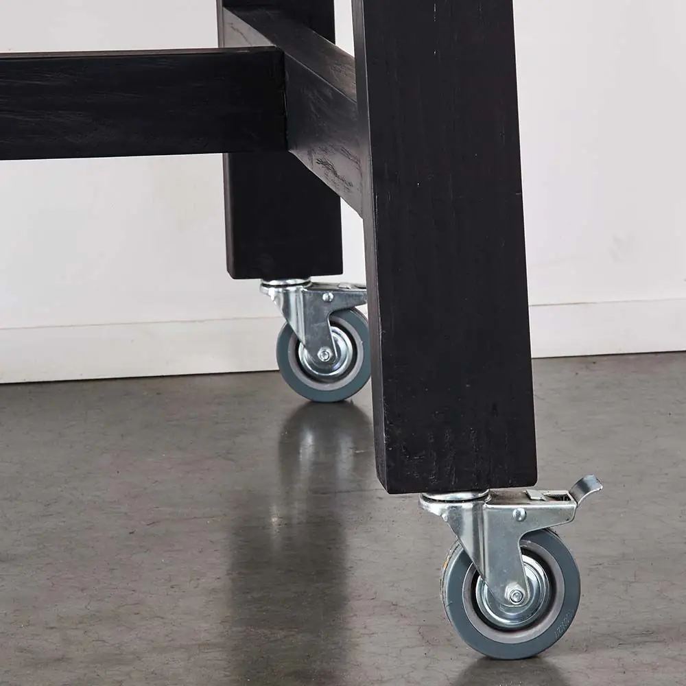 Crafted from alder wood and finished in drifted black, the Van Gogh is a multipurpose bench. A perfect height for food preparation then add a couple of stools to gather at meal time. The lockable wheels make it easy to move around.