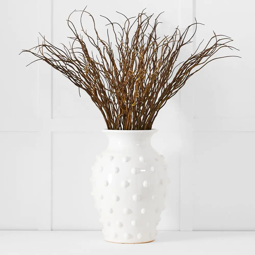 This stem features a realistic natural brown texture with slender, branching twigs that provide height and organic movement. Its flexible nature allows you to style it effortlessly in various arrangements to suit your home aesthetic.
