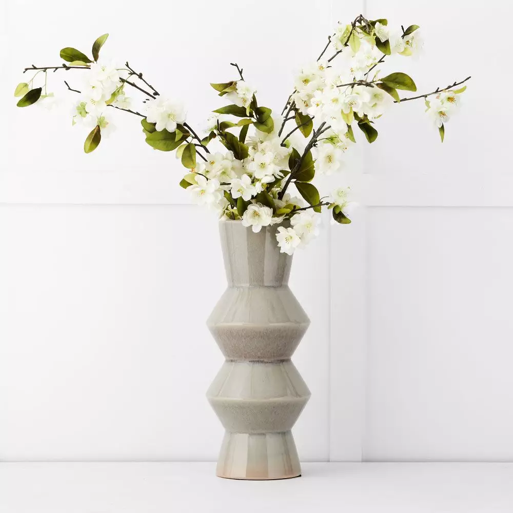 A striking dove grey vase that looks just as good with flowers as it does as a decoration. Make a grouping with the Lucille and Agua vases.